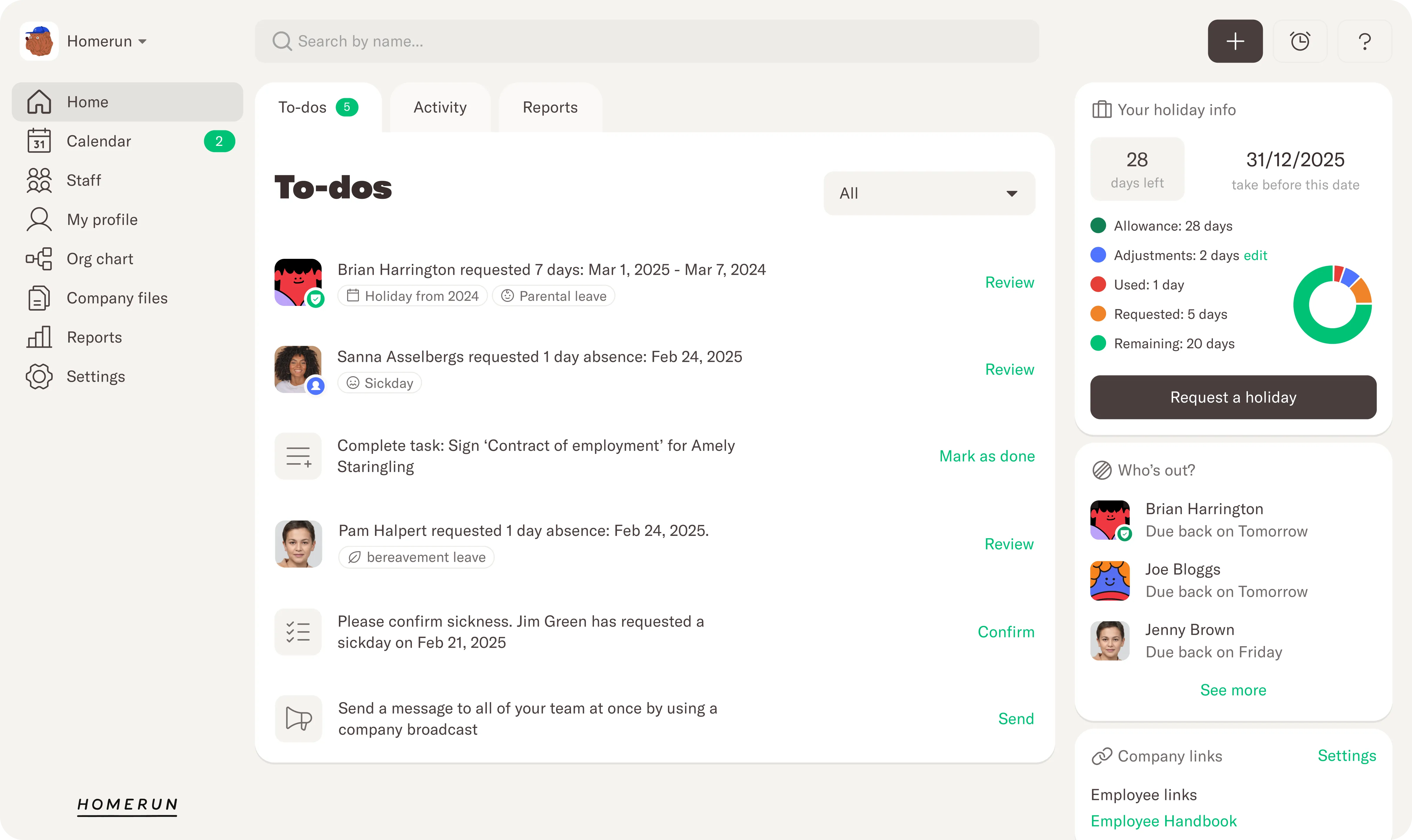 Homerun has made an incredible difference to the way we manage HR components such as staff holidays, sickness and expenses.