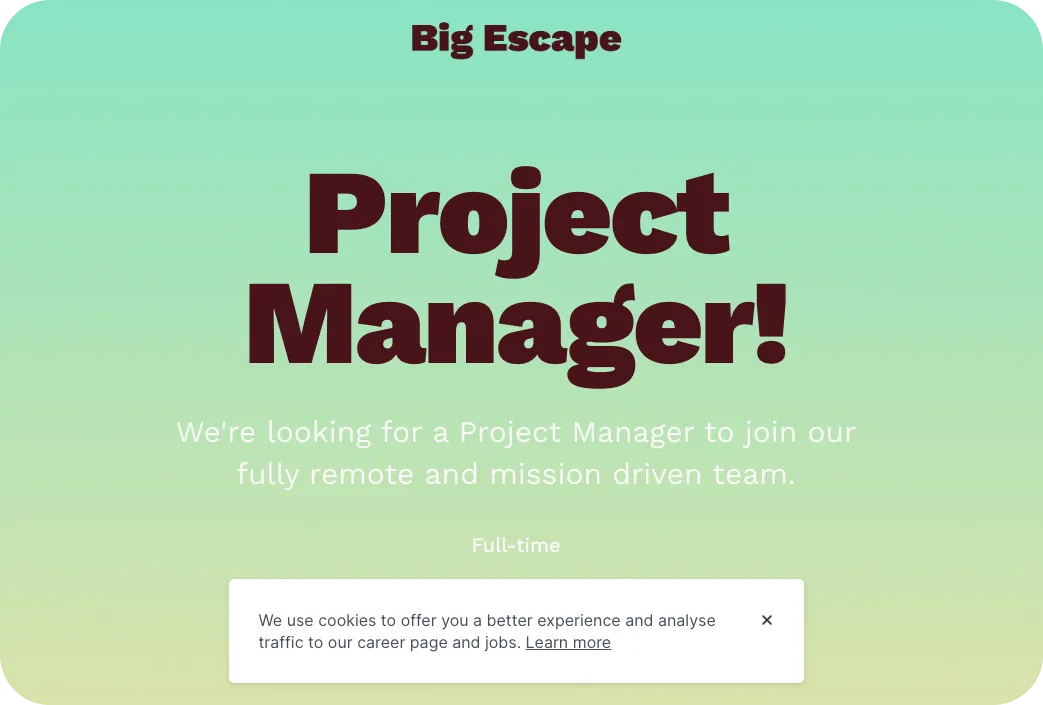 We’ve also made it easier for you and for your candidates to control what cookies are placed on your career page, job posts and apply forms. You have the option to disable the Google Analytics tracking cookie. If you choose to enable the Google Analytics tracking cookie, you can also ask for the candidates’ consent with the cookie banner on your pages. This will give candidates the option to enable or disable the tracking cookies themselves. Please note that disabling the Google Analytics cookie (by you or the candidate) will impact the data shown on the Insights page in your account. Learn more about how cookies with Homerun work in our Help Center.