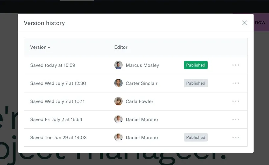 This allows you to save your work, close your browser, and pick up where you left off the next day. It also allows anyone on the team to access the latest saved version of a job, so that they can help out with design or copy before publishing.